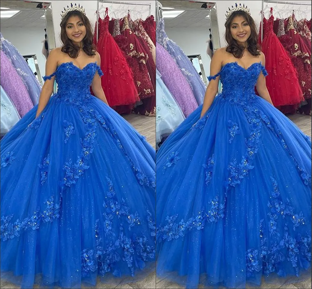 Royal Blue Floral Applique Quinceanera Blue Floral Prom Dress With Puffy Princess Ball Gown Beaded Off Shoulder Design For Sweet 15 Girls Birthday Party In 2022 From Lovemydress 75 29 Dhgate Com